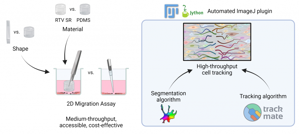 This research focuses on improving the accessibility and replicability of cell tracking methods to study cell migration, addressing the current dependency on manual segmentation and tracking, which can be cognitively taxing. The team developed a 2D migration assay and an automated tracking plugin for ImageJ, enhancing the quantification and analysis of single-cell migration. These innovations aim to bridge the gap between labs with varying computational expertise, providing user-friendly tools capable of capturing high-resolution data.