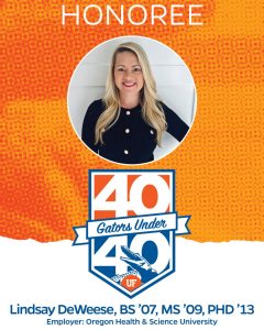 Lindsay DeWeese, Ph.D., is a medical physicist and associate professor in the Department of Radiology at Oregon Health & Science University (OHSU). She is a triple-degree Gator with a BS and MS in nuclear engineering sciences and Ph.D. in medical physics.
