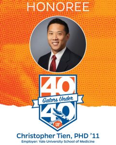 Christopher Tien is an associate professor of therapeutic radiology at the Yale University School of Medicine. Tien was able to graduate with his Ph.D. in medical physics from UF at 25, funded by the prestigious UF Alumni Graduate Fellowship. After stints at Brown University for residency and Chicago for private practice, he has been at Yale since 2016.