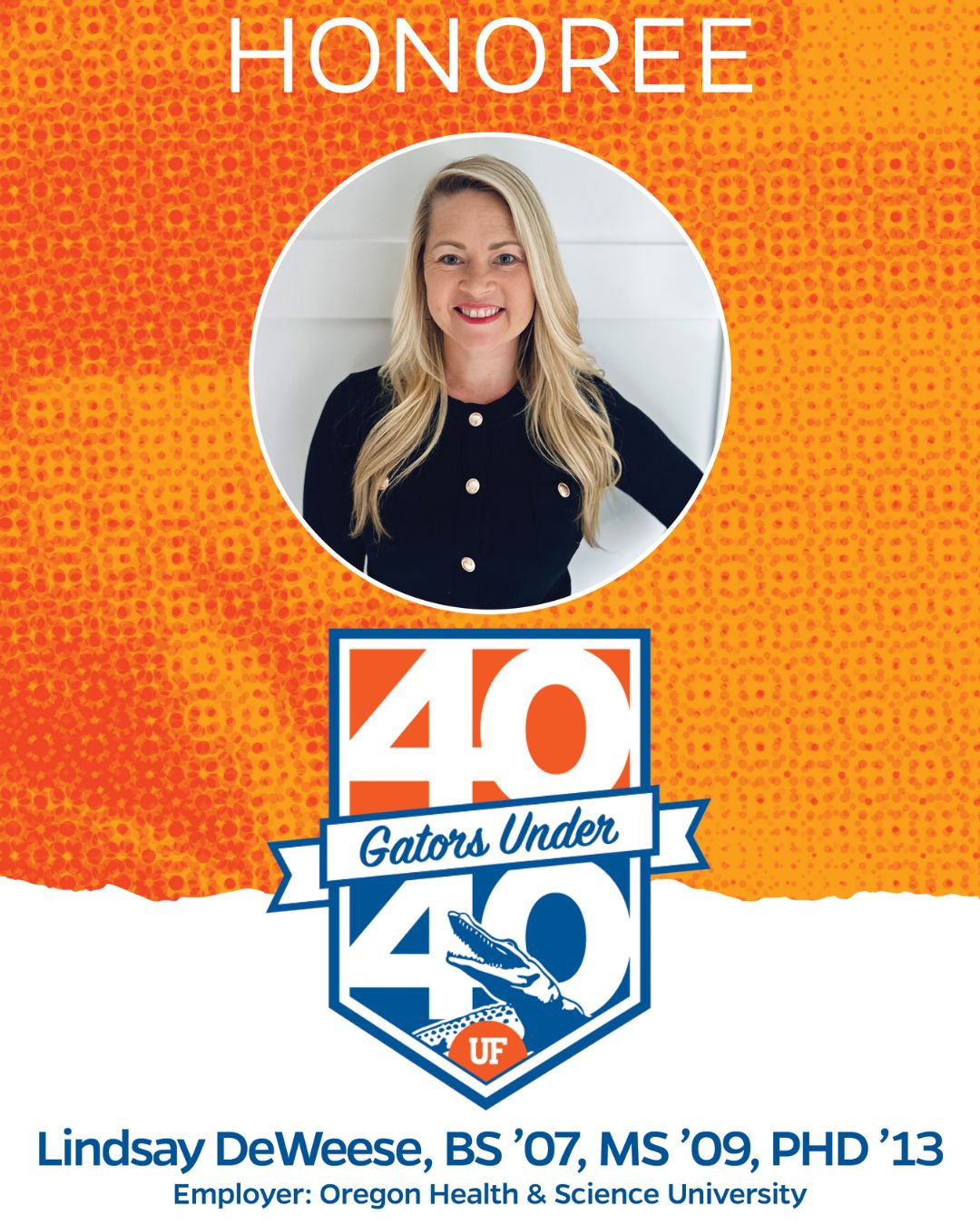 Lindsay DeWeese, Ph.D., is a medical physicist and associate professor in the Department of Radiology at Oregon Health & Science University (OHSU). She is a triple-degree Gator with a BS and MS in nuclear engineering sciences and Ph.D. in medical physics.